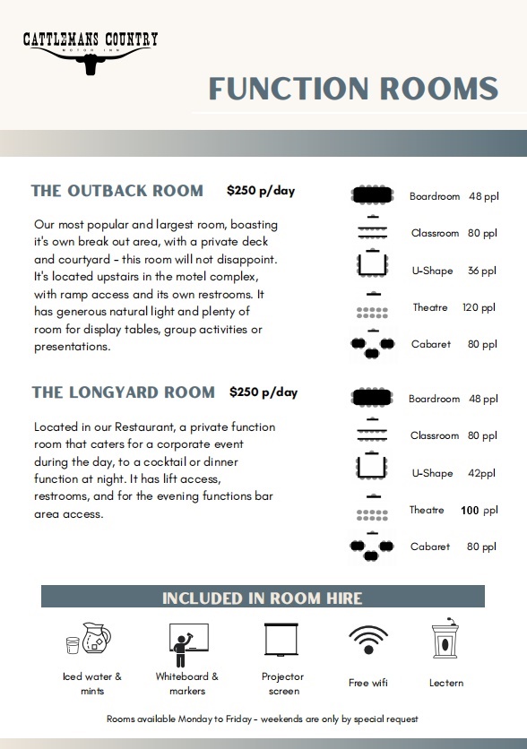 The Cattleman’s is the perfect place to host your next conference with dedicated 50, 100 and 120 seat conference rooms to suit every occasion.